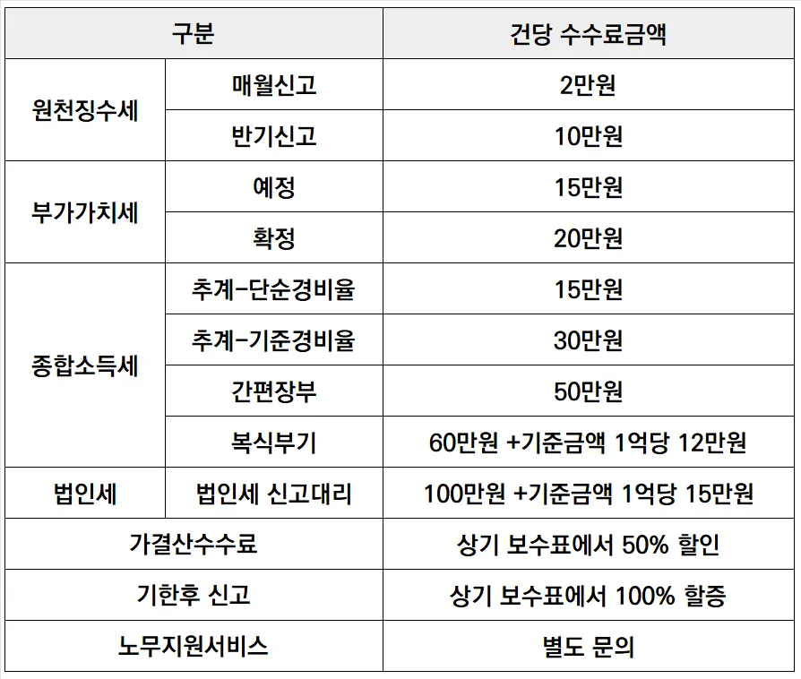 신고대리 / 기한 후 신고 수수료